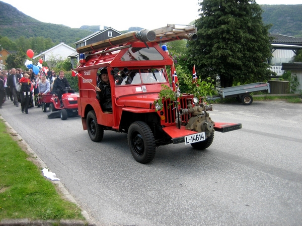 På Jørpeland har de ikke hatt brannbil de siste årene, fordi den har ikke virket. Men det var det forandring på i år, bilen var blitt overhalt til Veteranbrannbiltreffet og motor ble finjustert i vinter. Slik at den nå kunne kjøre i toget, og det var til stor glede for mange. (foto - Jan Knutsen)I 17mai toget på Hommersåk i Sandnes Kommune stillte Rune Fotland opp med sin brannbil. Riska Brannvern er 60år i år og den anledning ble han invitert med Sandnes Dodgen. (1964 mod)